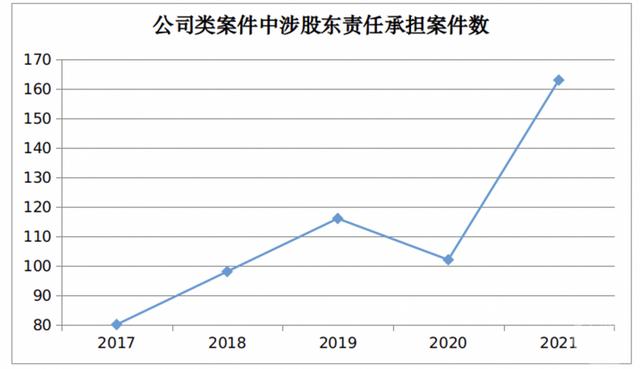 ▲公司类案件中涉股东责任承担案件数量总体呈现上升。图片来源/北京三中院